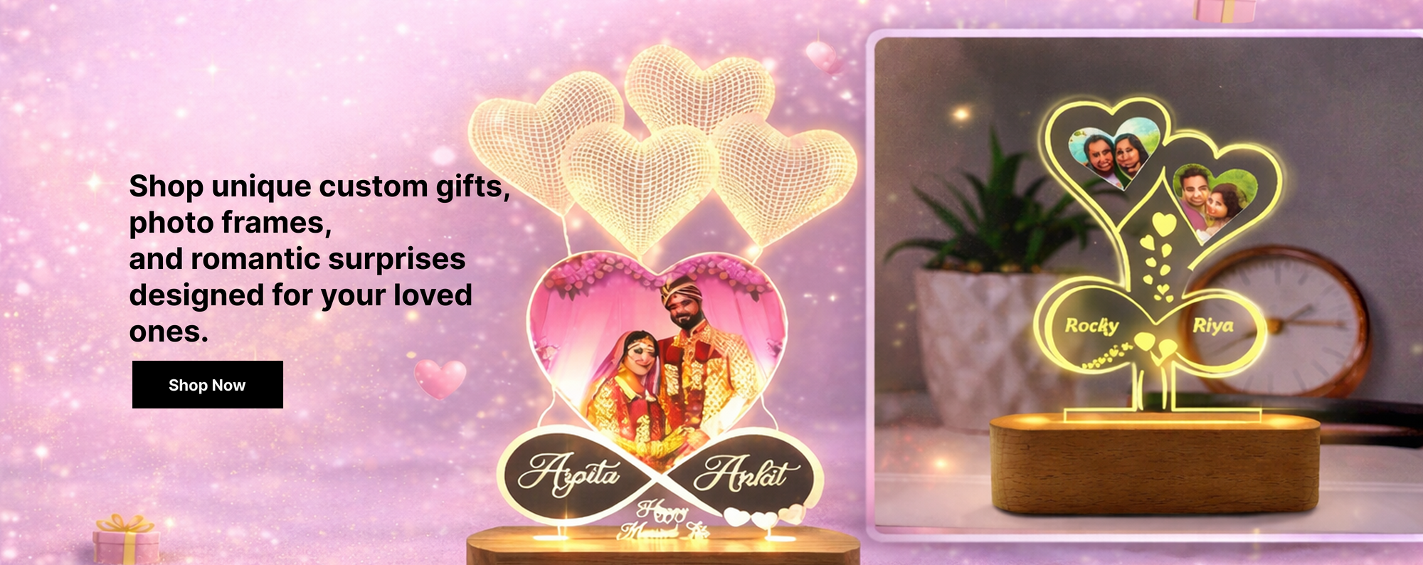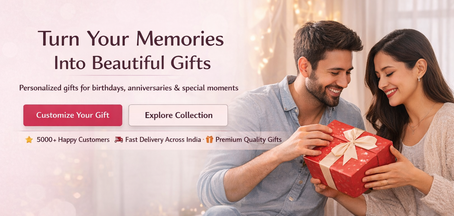 Premium Quality. Heartfelt Personalization. Fast Delivery Across India. We’re more than just another gift store — we turn special moments into unforgettable memories with custom-made products that truly connect. 💝
