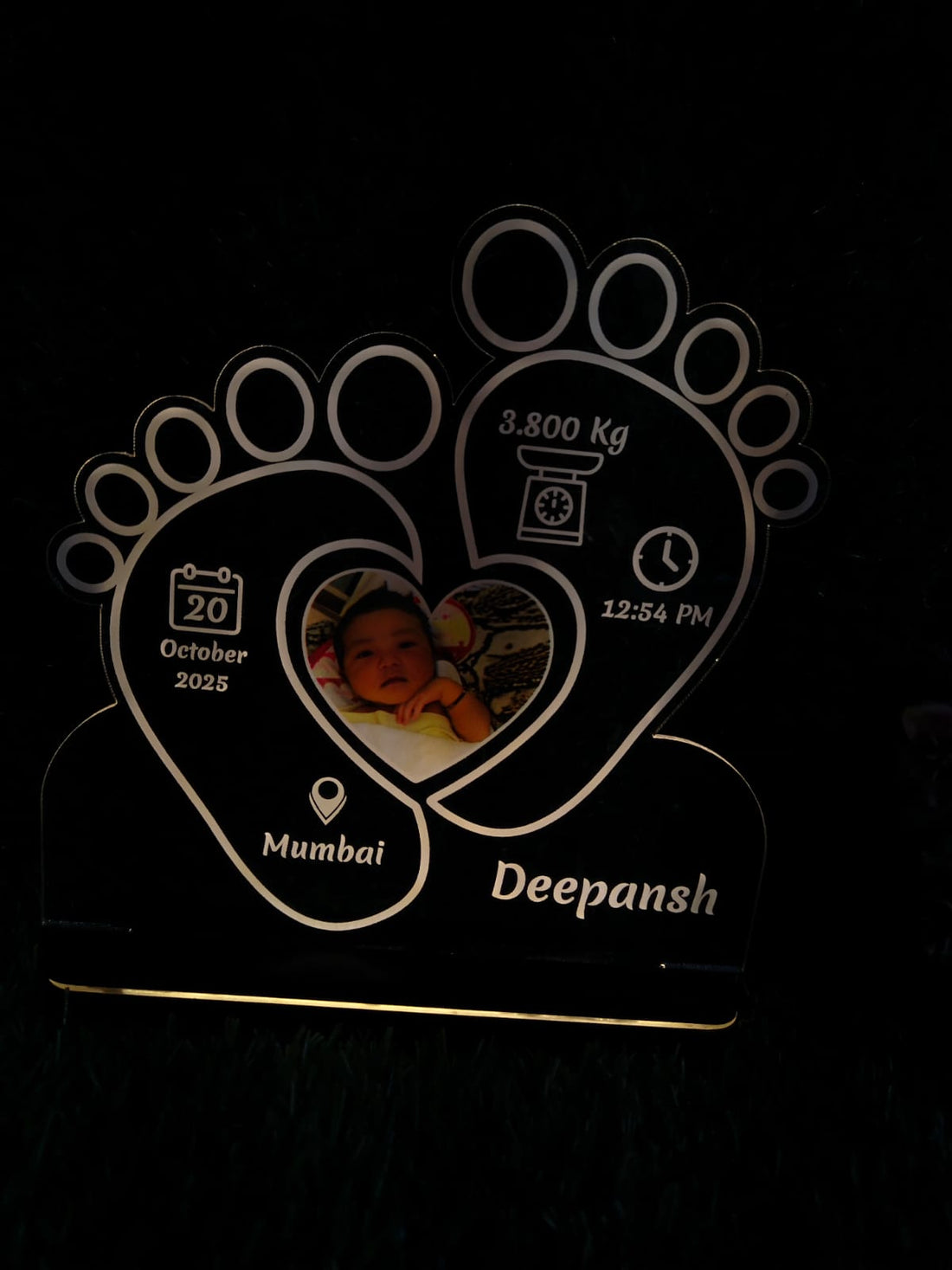 Personalized Acrylic Baby Frame with LED Wooden Base ✨ A premium gift to celebrate the birth of a newborn – fully customizable with photo, name, birth details & more!