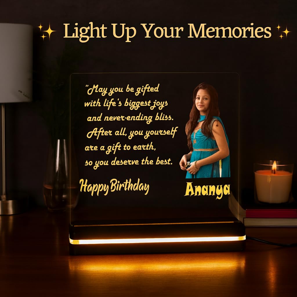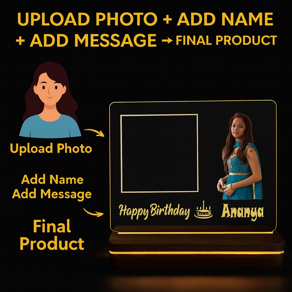 Make every celebration memorable with our Personalized Acrylic LED Photo Frame with Wooden Base, designed to turn special moments into a beautiful glowing keepsake. Customized with a photo, name, and engraved message, this elegant acrylic lamp adds a personal and emotional touch to any space.