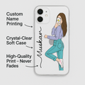 A stylish personalized case featuring a modern selfie illustration and custom name printing. Designed for girls who love fashion, confidence, and aesthetic accessories. Ideal for birthdays, travel moments, college routine, office use, and décor lovers. Soft TPU protection keeps the phone safe while showcasing a bold trendy artwork.