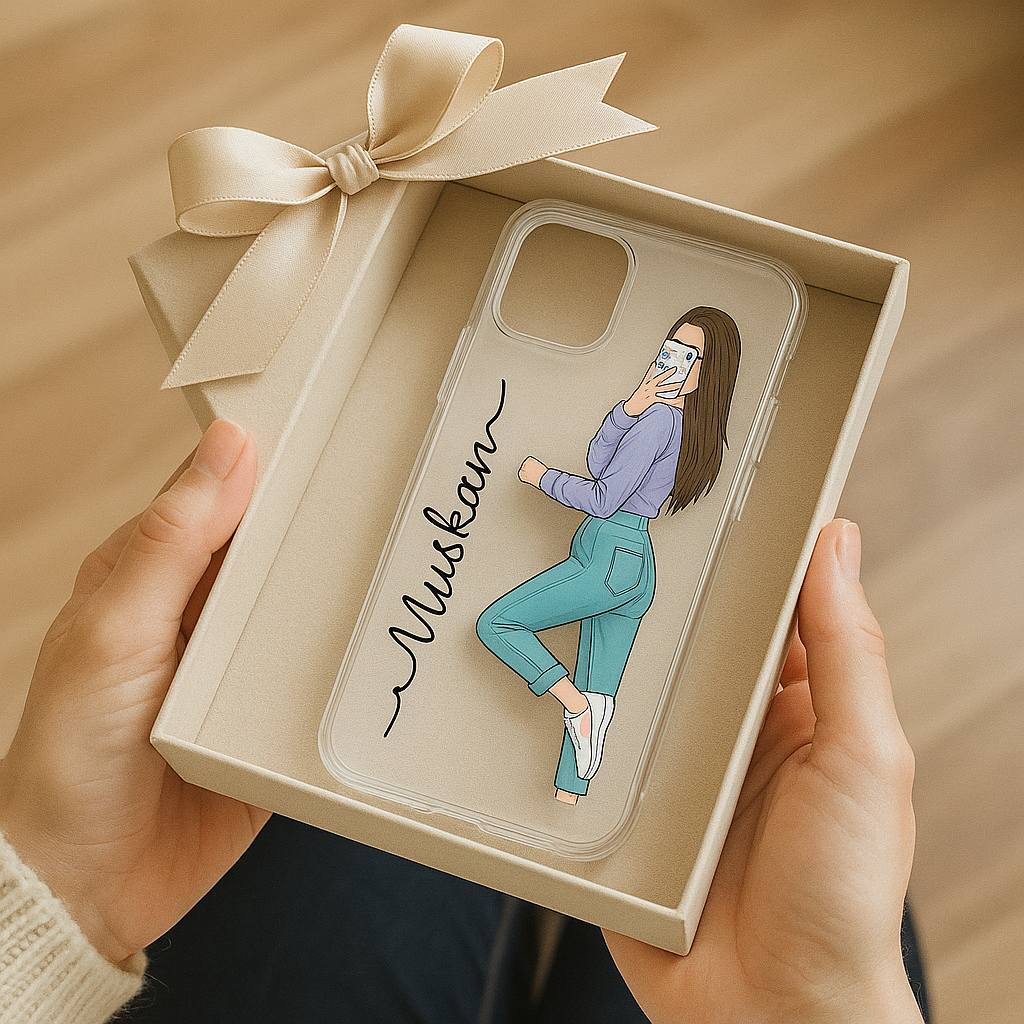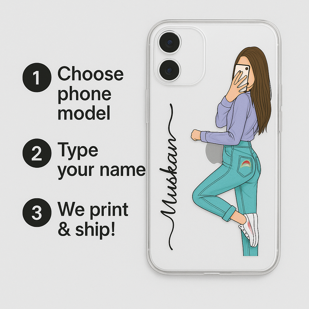 TERA MERA GIFT Custom Girl Mobile Cover – Personalized Name Case with Trendy Selfie Art, Perfect Gift for Birthdays & College Life